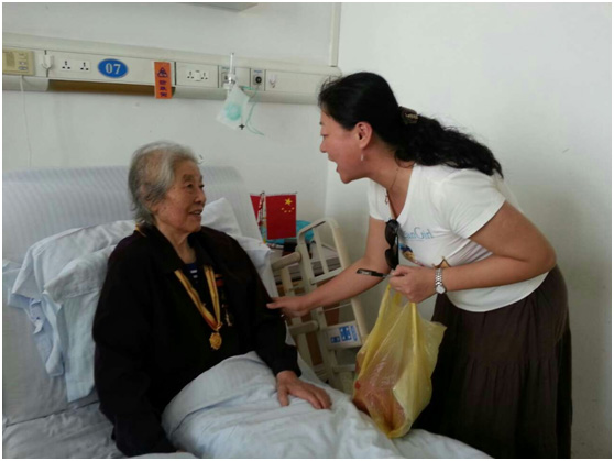 (离休部专管员、共产党员贾沁同志慰问离休干部)